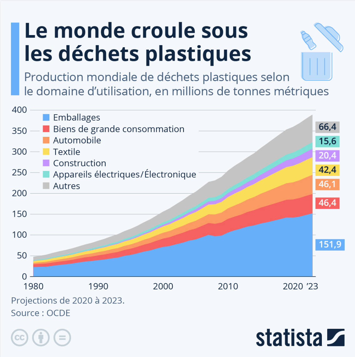 Chaque année, plus de kg de déchets plastiques sont générés que le poids total de tous les êtres humains réunis...
